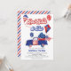Inbjudan till Red White och due babydusch - med enkel redigering av mallen för att anpassa till en sprinkle i baby, par-dusch, gender-visning etc. Utformningen har en vintage lastbil med hjul och amerikanska flagga som är inlastade med en stor cupkaka, tillsammans med drakar och ballonger som är dekorerade med stars och stripes. Denna fjärde av Jörtemed inbjudan har ett rödvitt och blått färg-system med groovisk retrotypografi. Modern könsneutral design för en pojke- eller flickdusch.