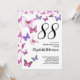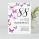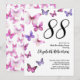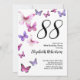 Denna snygga och fantasifulla 88-års inbjudan är perfekt för en trevlig fest och sätter en rolig och festlig ton. Denna design har rosa och lila fjärilar och är ett fint feminint val för ett speciellt evenemang för att fira en milstolpe födelsedag. Anpassa för din egen födelseårsdag.