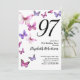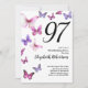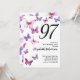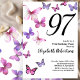 Denna vackra och lekfulla 97-års inbjudan är perfekt för en trevlig fest och sätter en rolig och firande ton. Denna design har rosa och lila fjärilar och är ett fint feminint val för ett speciellt evenemang för att fira en stor födelsedag. Anpassa för ditt eget födelseår och sök efter "97" i min butik för att se samordnade designs.
