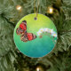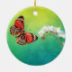 Fjäril & blomma på grön vattenfärg julgransprydnad keramik