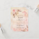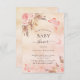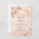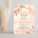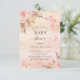 För en modern boho stil babydusch. A ro guld, rosa, skorstensbildning mot metallisk tittar bakgrund. Dekorerad med ro guld och rosa blommigt, rosor, pampasgräs och fjärilar. Anpassa och lägg till information om namn och party.