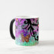 FJÄRIL LILA GNISTRAR, SVART BLOMMSTERMONOGRAM, MAGISK MUGG