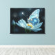 En ljusblå fjäril nära måne och stjärnor som reflekteras i vingar på en månblomma