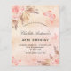 A ro guld, rosa, skorstensbildning mot metallisk tittar bakgrund. Dekorerad med ro guld och rosa blommigt, rosor, pampasgräs och fjärilar. Anpassa och lägg till information om namn och party.