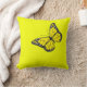 Detta kudder särdrag en singelfjäril på en gul bakgrund och särdrag en lite olik design på varje sida.