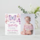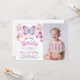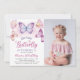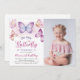 Fjäril Rosa Lila Flickor Födelsedagsfoto Inbjudningar