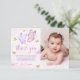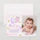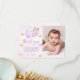Fjäril rosa lila guld flicka första födelsedagsfoto tackkort.