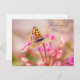 En Liten Kopparfjäril med orange och svarta fläckiga vingar vilar fint på starkt rosa blommor. Bakgrunden med mjuk fokusering ger en drömlik kvalitet till scenen och stärker den naturliga skönheten och lugnet. Detta ”Tänker på dig”-postkort kan göras personligt om du önskar.