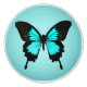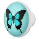 Fjäril - turkosblått och svart - digitalt förhöjt foto mot en turkos-/aqualutningbakgrund