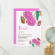 Fjärilar Älskare Rosa Blommig Skrift Bröllop Inbjudan med vackra handmålade djärva rosa, orange röda blommande blommor, vackra fjärilar och grönska. Perfekt för höstens boho-tema bröllopsfest garden party. Med en modern skrifttypografi.