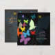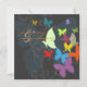 Fjärilar, fladdrande förbi, i flera färgers silhuetter på filt lager ger krämton till denna vackra nyans av kakao bakgrund (mörk choklad framsida) och urblekta ornamentala blad utsmyckade med krullar och lockar i kräm på blå. För fantasifull tillställning.. bröllop, årsdag, öppet hus, inbjudan till auktion!! Copyright © 2010 PixDezines.com och PixDezines på zazzle.com