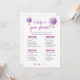 Vi presenterar vårt "Fjärilar Lilafärg - Vad Har Du På Din Telefon" Spelkort, ett fantasifullt tillägg till din bröllopsfest eller möhippa. Prytt med charmiga lila fjäril- och blomsterdekorationer, inbjuder detta interaktiva spel gästerna att delta i en rolig och modern aktivitet. Gör dig redo för skratt och spänning när gästerna avslöjar vad de har på sina telefoner med detta underbara spelkort!