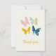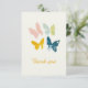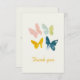 Uttryck din tacksamhet med elegans och charm med detta tacksamhetskort med färgglada fjärilar. Framsidan av kortet visar en livfull samling fjärilar som symboliserar förvandling och glädje, tillsammans med "Tack" i en modern, snygg stil för en tidlös touch.