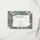 Elfenbensvitt, krullat papper med fjärilar och vilda blommor på mörkt grön design för bröllopssvar.