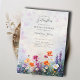 Fira den blivande bruden med en livstid av lycka och gemenskap med denna moderna och romantiska bröllopsinbjudan i fjärilstema som kombinerar ett annat trendigt tema: vilda blommor. Med en oljemålning av en sommaräng i nyanser av lila, lavendel, djupviolett, ljung, rosa, vit och orange är denna eleganta inbjudan säker på att sätta tonen för en vacker och minnesvärd händelse. Det romantiska "En livstid av fjärilar"-temat är vackert illustrerat med dammiga, blekt lila fjärilar i olika storlekar som flyger runt texten som kombinerar klassisk bröllopstypografi med modern kalligrafi. En perfekt bröllopsfest, bröllopsbrunch eller teceremoni, inomhus eller utomhus,