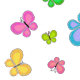 Rolfsamt flerfärgade folkliga konststils fjärilar fladdrar över denna söta gula och vita randiga bakgrund.