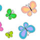 Roliga fjärilar i folkkonststil flyger över denna söta gula och vita randiga bakgrund.