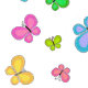 Roliga flerfärgade folkkonststilar fjärilar flyger över denna söta gula och vita randiga bakgrund. Anpassa texten med ett namn eller ett meddelande.