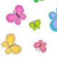 Rolfsamt flerfärgade folkliga konststilsfjärilar flyger över denna söta rosa och vita randiga bakgrund.