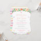 Pastellfärgade vattenfärg blommor och modern looping text med bokstäver inbjuder gästerna att fira ankomsten av en söt bebis. Observera att du kan flytta de enskilda fjärilarna (eller ta bort dem) genom att gå in i designverktyget (klicka på "anpassa ytterligare") längst ner i personaliseringsrutan.