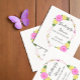 Fjärilskyssar för den blivande fru Bröllopsfest med rosa och gula blommor runt en geometrisk ram med färgglada fjärilar