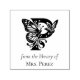 Fjärilsmonogram Bokmärke Självfärgningsstämpel - Anpassningsbar Biblioteksnamnskylt Design. Lägg till en personlig touch till din bok samling med denna design med ett bokstavsmonogram med fjäril och blommiga detaljer. Anpassningsbar text som lyder "Från bibliotek av" och ditt personliga namn, denna stämpel säkerställer att du aldrig förlorar en bok igen. Denna design kombinerar vintage charm med modern praktiskhet, vilket gör den perfekt för att märka ditt personliga bibliotek eller ge som en present till en bokälskare. Oavsett om du är lärare, bibliotekarie eller bara älskar att läsa, är dessa anpassningsbara namnskyltar ett stilrent sätt att säga "Denna bok tillhör mig". Perfekt för personliga bibliotek, bokälskare, läsare, lärare och skolbibliotek