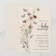 Fjärils-babyshower-inbjudan. Letar du efter en unik bohemisk känsla för att imponera på dina vänner och familj? Chic och stilren, denna vackra färgpalett av tan, brun, rost, terrakotta och bränd orange är årets trendiga tema för babyshower. Akvarellfjärilar, rustik torkad gräs, blad och vintage vilda blommor är fantastiska detaljer för din moderna boho-chic babyshower. All brevpapper är professionellt designat av Painted Paperie.