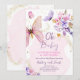 Fjärilsbabykalas Lila blommor Rosa flicka Inbjudan