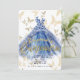 Fjärilsdans Blå Klänning Guld Quinceañera 15 Inbjudningar