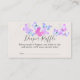 Elegant och feminin lott för blöjraffle med akvarellfjärilar och silverkonfetti. Denna känsliga design har en vacker färgpalett i nyanser av rosa lila och lila på en champagnekräm bakgrund. Den personliga texten på baksidan är redigerbar och du kan också ändra bakgrundsfärgen om du önskar. Enkel minimalistisk stil med modern fjärilstema. Vänligen bläddra i min butik efter matchande inbjudningar och tillbehör i Butterfly Skies-kollektionen.