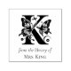 Bokmärke med fjärilsmonogram i form av självbläckande stämpel - Anpassningsbar biblioteksnamnskylt. Lägg till en personlig touch till din bokssamling med denna design med ett monogram med fjäril och blommor. Anpassningsbar text som lyder "Från bibliotek av" och ditt personliga namn, denna stämpel säkerställer att du aldrig förlorar en bok igen. Denna design kombinerar gammal charm med modern praktiskhet, vilket gör den perfekt för att märka ditt personliga bibliotek eller som en present till en bokälskare. Oavsett om du är lärare, bibliotekarie eller bara älskar att läsa, är dessa anpassningsbara namnskyltar ett stilrent sätt att säga "Denna bok tillhör mig". Perfekt för personliga bibliotek, bokälskare, läsare, lärare och skolbibliotekarier