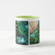 Eteriskt skuggar av turkos, och grönt av detta fjärilsfoto som skrivs ut på båda sidor av muggen, skapar ett unikt intryck på en mugg med ett limefruktgrönthandtag.