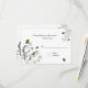 Grönt blomsterarbete är bakgrunden för detta eleganta svarskort. Massor av anpassningsbar text tillhandahålls för din bekvämlighet. Glöm inte att beställa de matchande inbjudningarna.