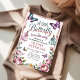 Fira ankomsten av din lilla fjäril med denna charmiga inbjudan till baby shower! Med ömtåliga akvarellblommor, fladdrande pastellfjärilar och fantasifull bokstavsstil fångar denna design perfekt skönheten och glädjen i nya början. Perfekt för en vår-, blomster- eller trädgårdstematisk baby shower, den lägger till en mjuk och feminin touch till din fest. Anpassa alla detaljer för att göra det unikt för dig!