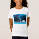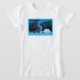 En digital målning med en igloo på polarnas isförpackning, sled hundar och en man i en parka. Den norra ljus-glöden. Kuvianak Inovia är God jul på Inuktitut (Eskimo). Ovanför den engelska texten visas Kuvianak Inovia i Inuktitut alfabet.