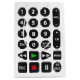Fjärrkontrollenhet för television på vit bakgrund.