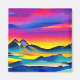 Färg i sol avspeglar sig över en bergstrakt av toppar och dalar som utger landskapet.
