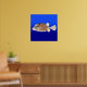 Vintagen skrivs ut av en fläckig skräppost som ställs in mot en blå bakgrund. Dessa tropiska fiskar finns runt korallrev i hela världen.