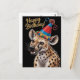 fläckig hyena som bär födelsedagsmössa vykort