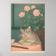 Fläckig katt som äter nudlar Ukiyo-e konsttryck Poster