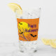 En Halloween-roligt som har en ljus gult fullt måne på orangens bakgrund. I förgrunden finns det en träd gren och tre fladdermus som flyger runt den. Du kan anpassa texten "Happy halloween".