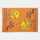 Handduken har en roligt Halloween-design. Den ljusa gulten måne ligger i orangen, med gren i träd och tre fladdermus i förgrunden. Du kan anpassa texten "Happy halloween".