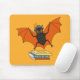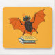 Musten i fladdermus älskare med en vektorillustration av ett av dessa fascinerande djur som bär hatt och glasögon i det varma hösten färg. Denna söta fluffa varelse flyger över lite bokar, främst "Halloween for noobs". T