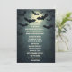 En flock fladdermus flyger över ett fullt på denna scoky Halloween fest inbjudan. Baksidan är slät, samma grått-grönt som framsidan.