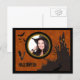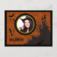 Fladdermus, spökhus fotoram och orange himmel vykort