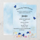 Fira kärlekens flykt med denna vackra fjärilsinbjudan till bröllopsfest. Med detaljerade fjärilsdetaljer och mjuk, romantisk design sätter denna inbjudan tonen för en glädjefylld sammankomst för att hedra den blivande bruden. Perfekt för trädgårdsfester, utomhusfiranden eller fantasifulla bröllopsfester, fångar denna mångsidiga inbjudan magin i förvandling, tillväxt och kärlekens nya resa. Anpassa med namn, datum och detaljer för att göra det unikt för dig och skapa en souvenir som gästerna kommer att värdesätta.