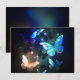 Fantastisk, glödande, blå och gul, nattfjäril på mörk bakgrund.