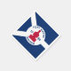 Paper napkin with flag of city of Fort Wayne, Indiana; blue and white flag and with red blockhouse in the center and three illustrations in the blue field - illustration of Native American’s head, French fleur-de-lys and British lion
