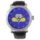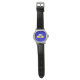 Watch with design with flag of Brussels-Capital Region of Belgium, blue flag with yellow, gray and white iris