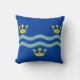 Throw pillow with design with a flag of historic county of Cambridgeshire, in England, Great Britain; blue flag with three golden crowns and two waves